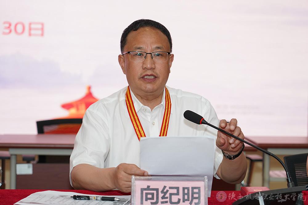 6月30日下午,学校在宝福路校区汽车机电大楼四楼视频会议室举行庆祝中国共产党成立102周年暨“七一”表彰大会。学校全体党员及受表彰的先进集体和先进个人参加会议,会议由党委副书记、院长向纪明主持。