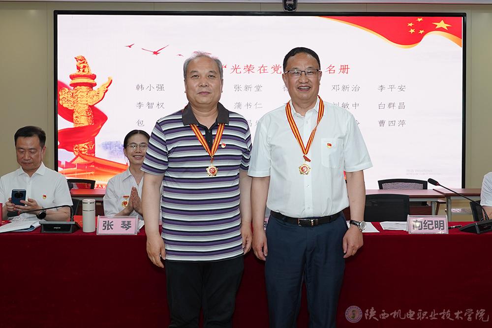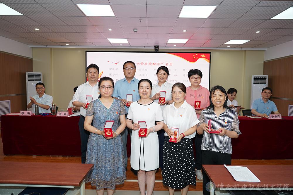 校领导为光荣在党满10年的党员同志发放政治生日卡,为光荣在党满20年、30年的党员同志发放党龄纪念章。