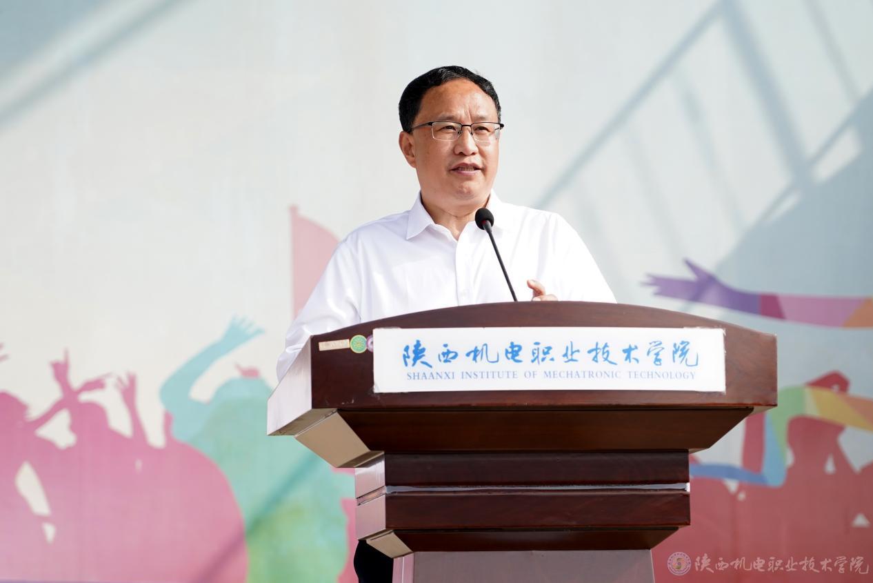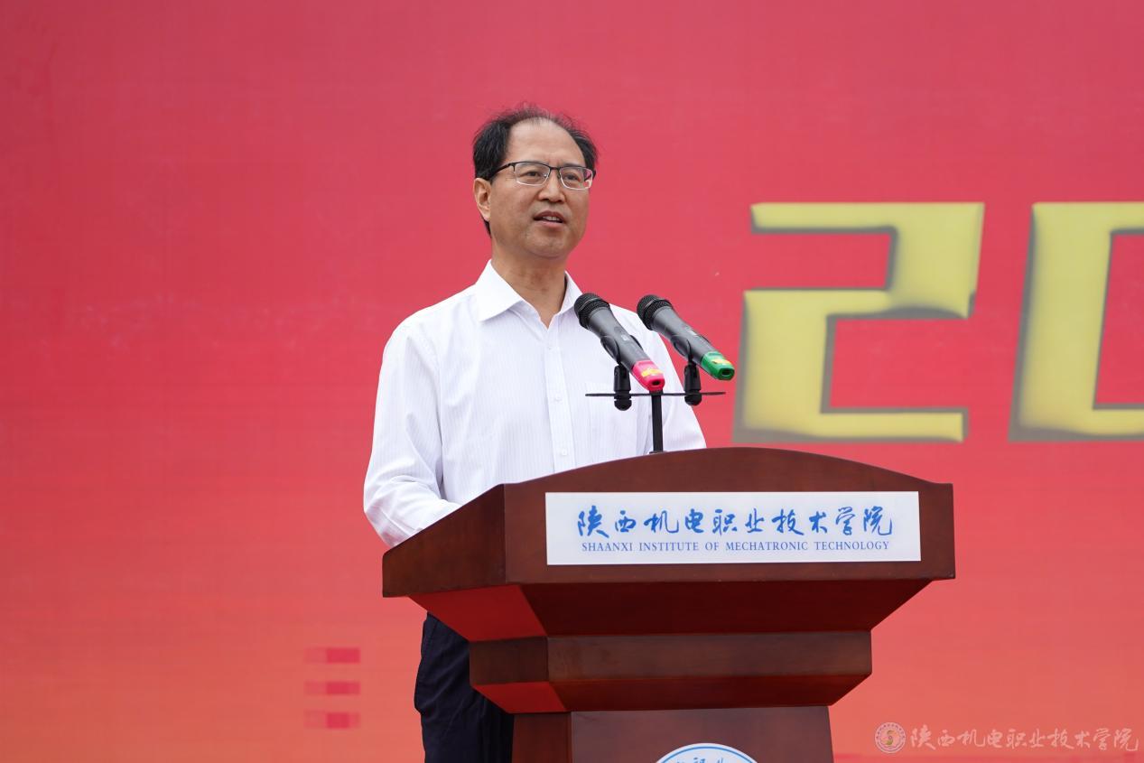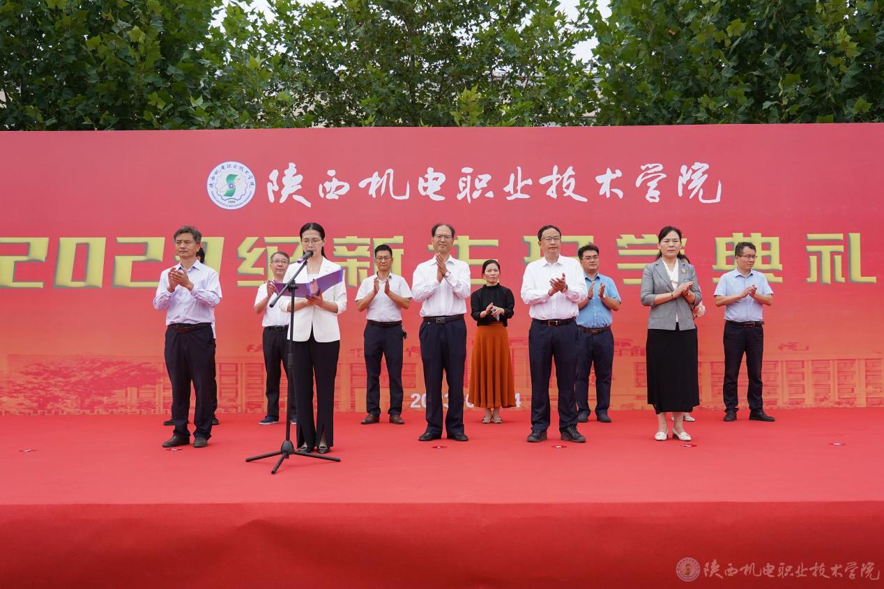 向纪明代表学校领导班子热烈欢迎2023级新同学的到来,勉励同学们做一个志存高远、有家国情怀的“追梦人”,做一个身心健康、热爱生活的“赶路人”,做一个实干笃行,以“技”立身的“答卷人”。