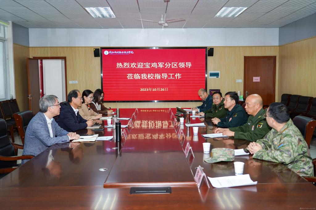 伊逊智对军分区领导一行来校检查指导工作表示热烈欢迎,并介绍了学院的基本情况、专业设置、国防教育、征兵工作、优质兵员储备基地建设等方面的情况,同时对宝鸡军分区、金台区人武部领导多年来对学院大学生征兵工作的关心与支持表示感谢。