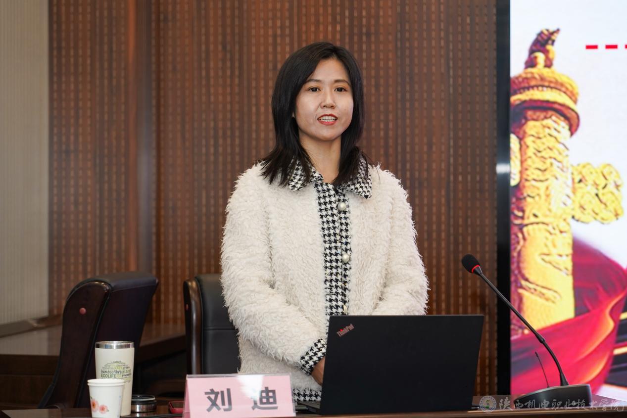 陕西工业职业技术学院化工与纺织服装学院院长、党总支副书记,教师党支部书记刘迪作题为《绣好双融双促双面绣,头雁引领群燕展翅飞——陕西省“双带头人”教师党支部书记工作室建设经验分享》的专题报告。