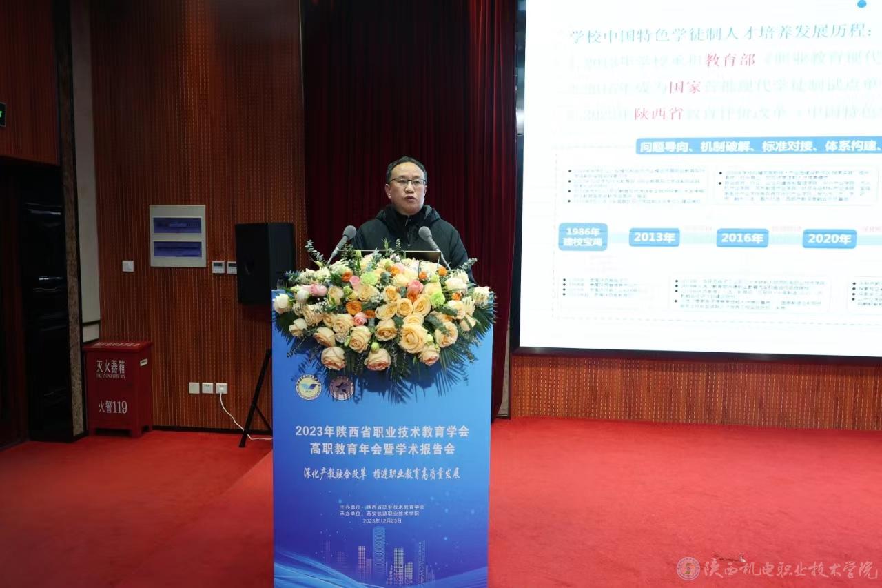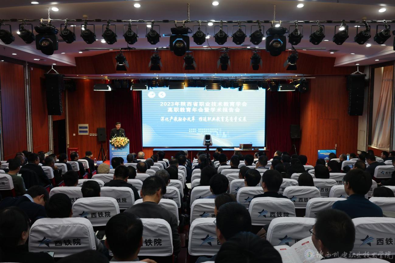 12月23日,陕西省职教学会2023年高职教育年会暨学术年会在西安召开,本次会议由陕西省职教学会主办,西安铁路职业技术学院承办。陕西省委教育工委委员、省教育厅副厅长申雪峰、职成教处处长王鹏,陕西省职业技术教育学会会长崔岩、全国高等职业学校校长联席会议主席、天津职业大学原校长董刚教授及相关会员单位代表等200余人参会。beat365党委副书记、院长向纪明,党委委员、副院长张克及教务处、各二级学院负责人参加会议。