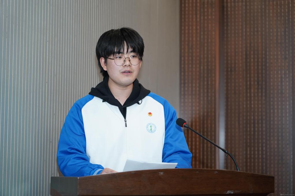 获奖学生代表铁道工程学院22铁道信号2班范家恺同学在发言中表示,受到学校的表彰既是对自己以往努力付出的肯定,更多的是对自身提出了更高的要求。他用“自信自立、坚韧勤奋、乐观进取”和大家共勉。