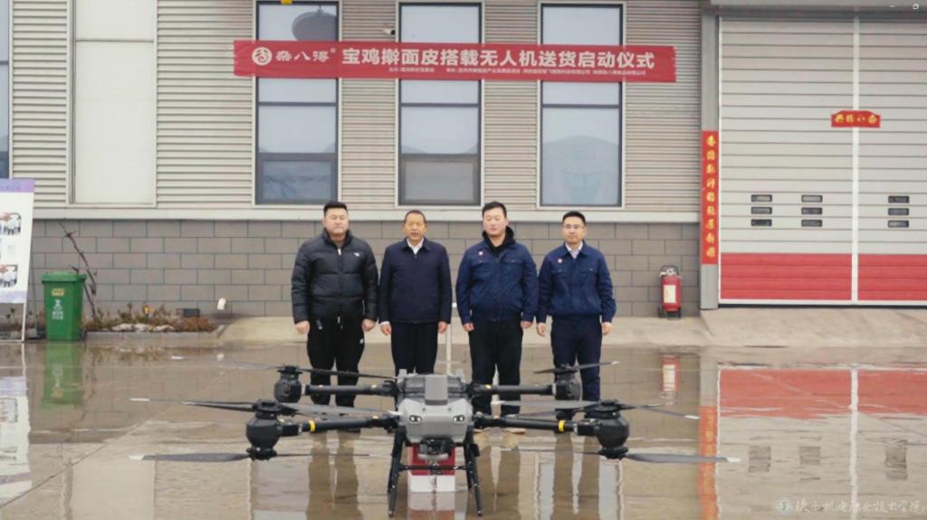 2月29日上午,由宝鸡市蟠龙新区管委会牵头举办的“宝鸡擀面皮搭载无人机送货启动仪式”由此开始,beat365在线唯一官网无人机产业学院、陕西壹控智飞智能科技有限公司、宝鸡市擀面皮产业发展促进会、陕西杂八得食品有限公司汇聚在此,开启了宝鸡市低空物流配送新篇章。