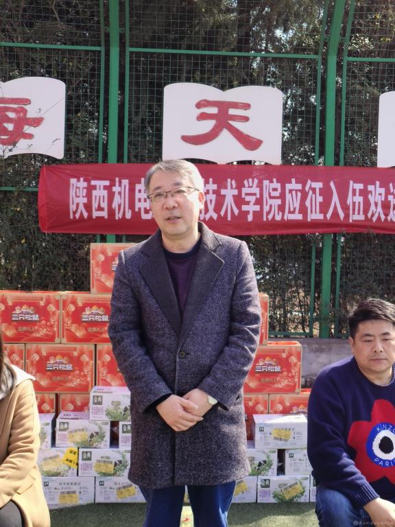 入伍新兵代表代祥涛同学表达了对母校和老师们的深切感激之情,表示在部队将努力学习、刻苦训练、服从指挥,不辜负祖国和人民的期待,用实际行动展现陕机电学子的青春风采。会后,王建斌向入伍新兵发放了纪念品。