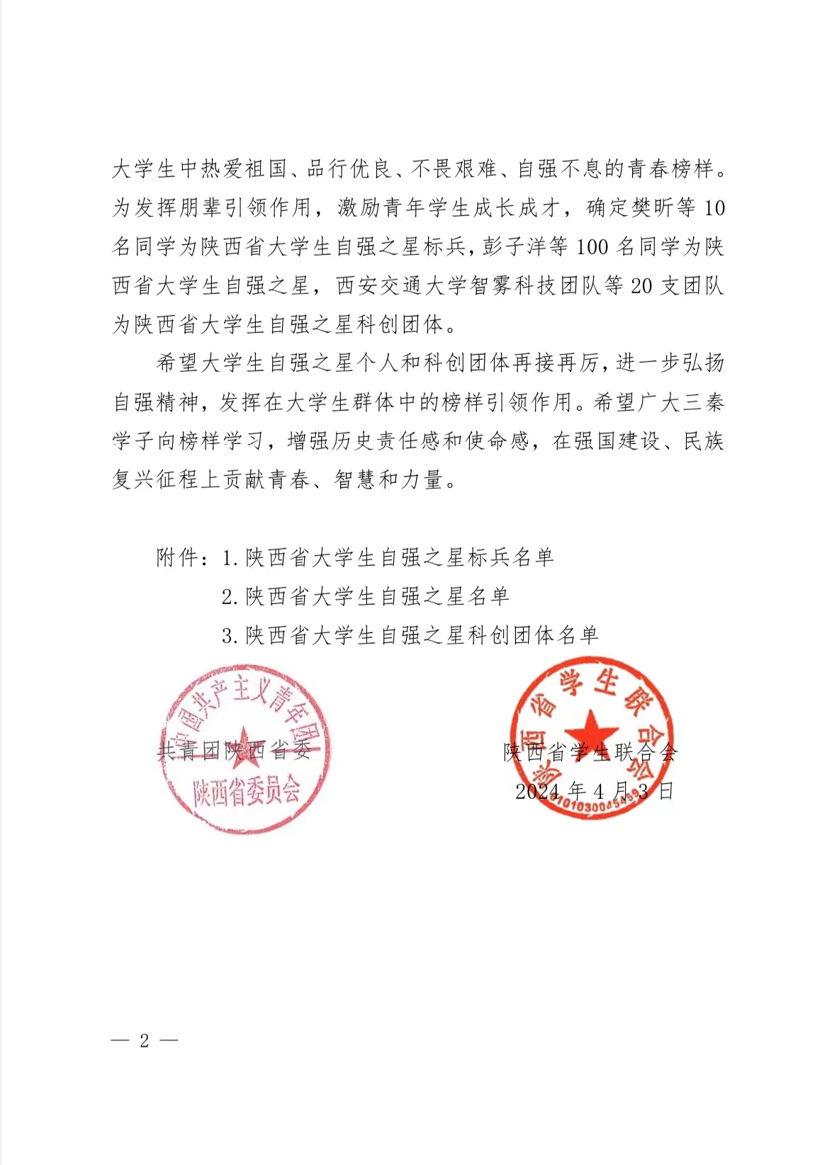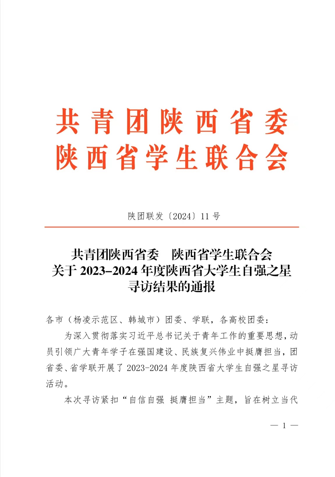 近日,共青团陕西省委,陕西省学生联合会发布《关于2023-2024年度陕西省大学生自强之星寻访结果的通报》,beat365学生张宇荣获“陕西省大学生自强之星”称号。
