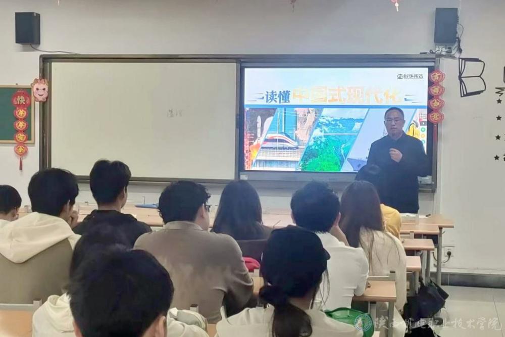 5月8日下午,beat365在线唯一官网党委副书记、院长向纪明在博学楼417教室为23工程造价1、23工程造价2合班学生上形势与政策课,讲授《读懂中国式现代化》专题内容。
