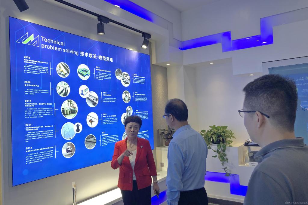 随后,李慧玲陪同伊逊智一行参观了长美科技展厅,观看了长美科技公司宣传片,介绍了企业技术攻关、攻坚克难的历程,伊逊智一行认真聆听了李慧玲对产品的详细介绍与产品内涵的科技含量,沉浸式体验了公司减振降噪的显著效果。