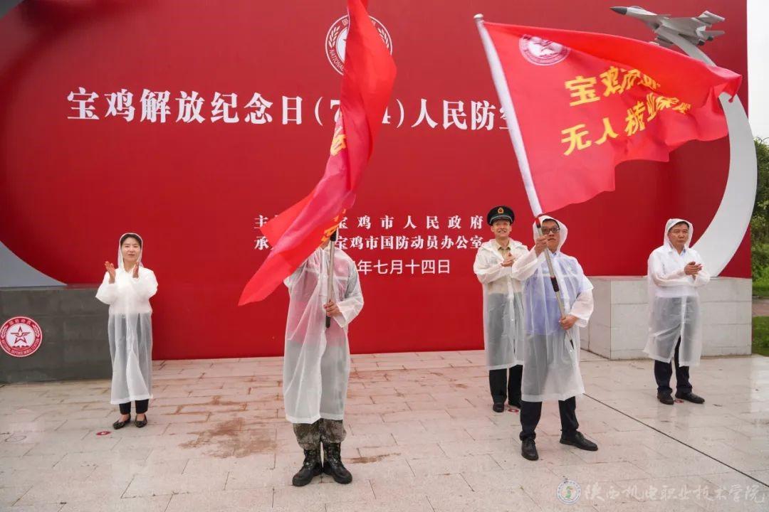 7月14日,宝鸡市人民防空警报试鸣活动在渭滨区渭河生态公园举行,活动为beat365在线唯一官网无人机产业学院组建的无人机专业保障队进行授旗。市委常委、副市长高宏真出席活动并讲话,beat365无人机专业保障队师生代表30余人参加活动。