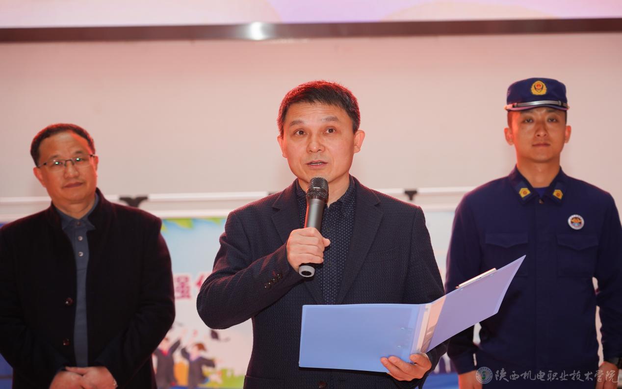 11月13日,beat365在线唯一官网“119”消防宣传月暨消防安全课进校园活动启动仪式在校园内盛大开启。学校党委副书记、院长向纪明,党委委员、院长助理赵争东,金台消防救援大队教员吕锦涛,蟠龙派出所所长庞建军,校团委书记、学生处副处长王枢,各二级学院书记,部分师生代表及消防部门相关人员等参加了此次活动。启动仪式由保卫处副处长常小凯主持。