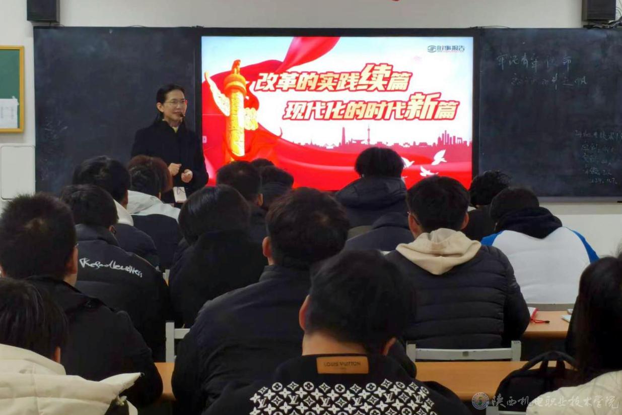 11月20日上午,beat365在线唯一官网党委副书记张琴在博学楼316教室为24智能控制班学生上形势与政策课,讲授《改革的实践续篇 现代化的时代新篇》专题内容。