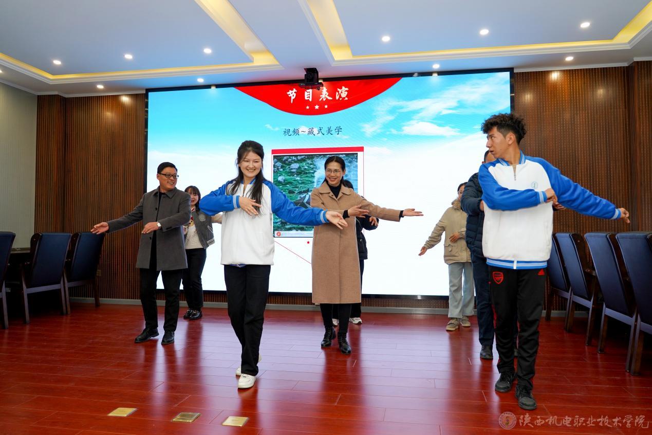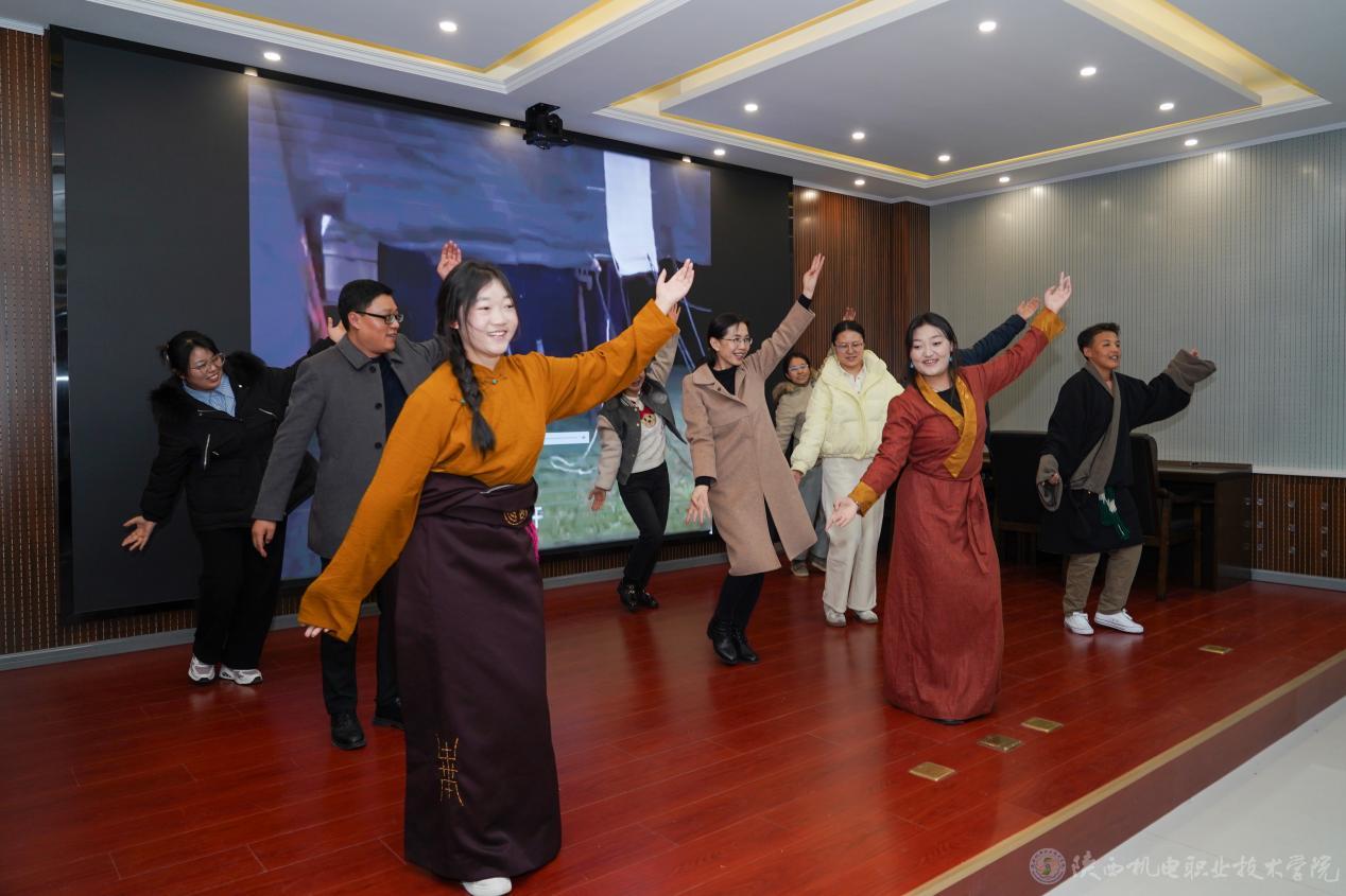 表演结束后,学生舞蹈代表邀请老师和同学们一同体验民族舞蹈的韵味,现场互动踊跃,气氛热烈欢快,欢声笑语交织回荡。