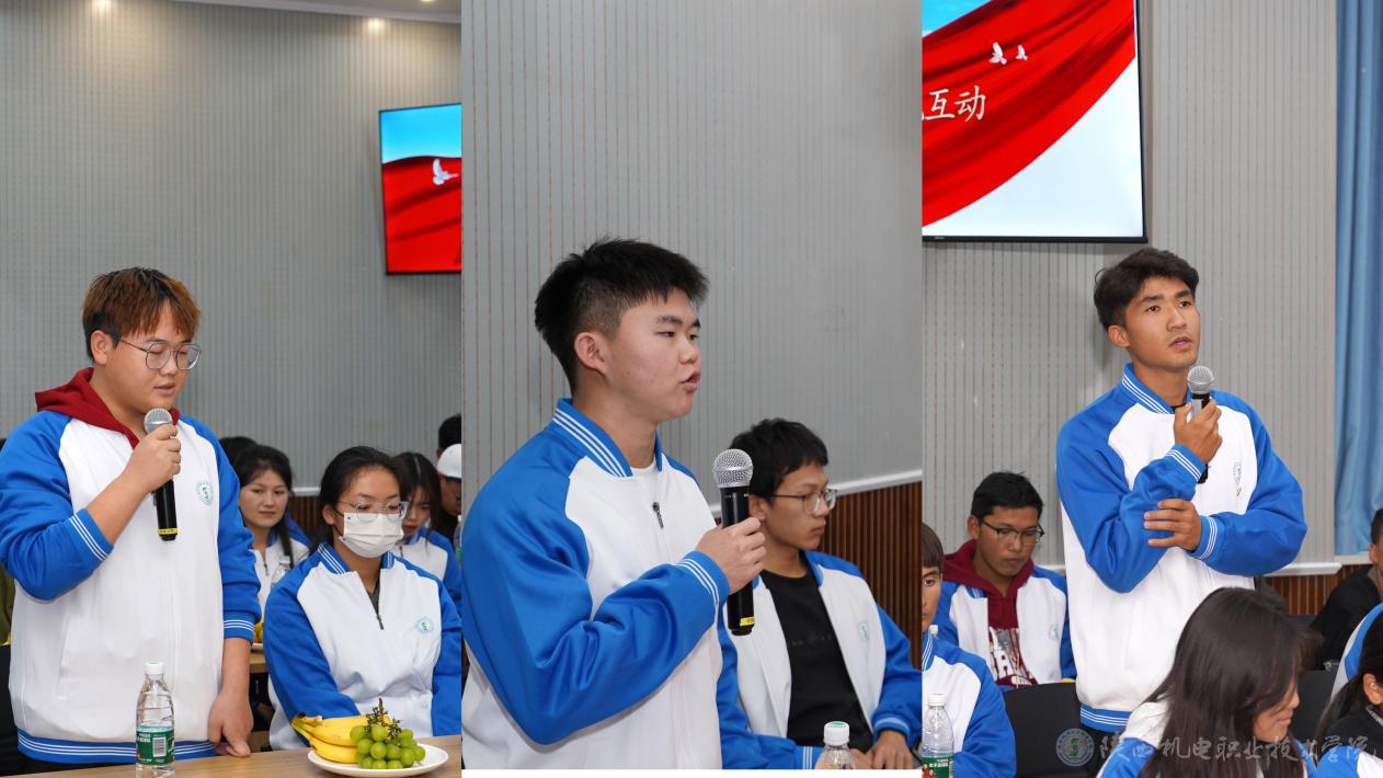 交流互动环节中,师生们围绕学业发展、文化传承、校园活动等话题畅所欲言,学生们分享在学习生活中遇到的温暖、问题与挑战。