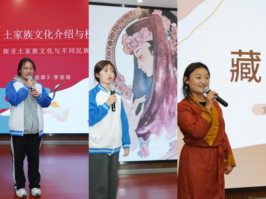在分享环节,李佳容、韩忠花、向秋措姆三位不同民族的学生代表依次登台,从他们的视角讲述多元文化交融中的故事与心得,让大家更深入地感受各民族文化的内涵与魅力。
