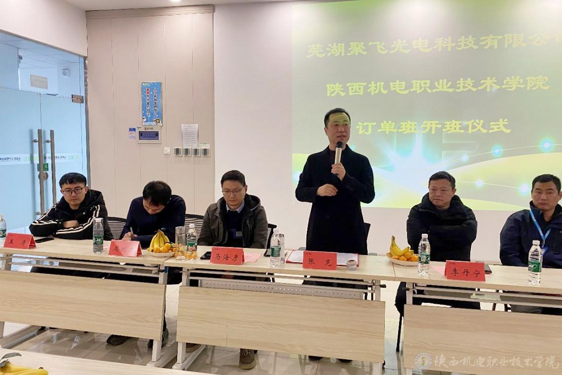12月11日,聚飞光电订单班开班仪式在安徽芜湖聚飞光电科技有限公司举行,beat365在线唯一官网党委委员、副院长张克出席仪式。