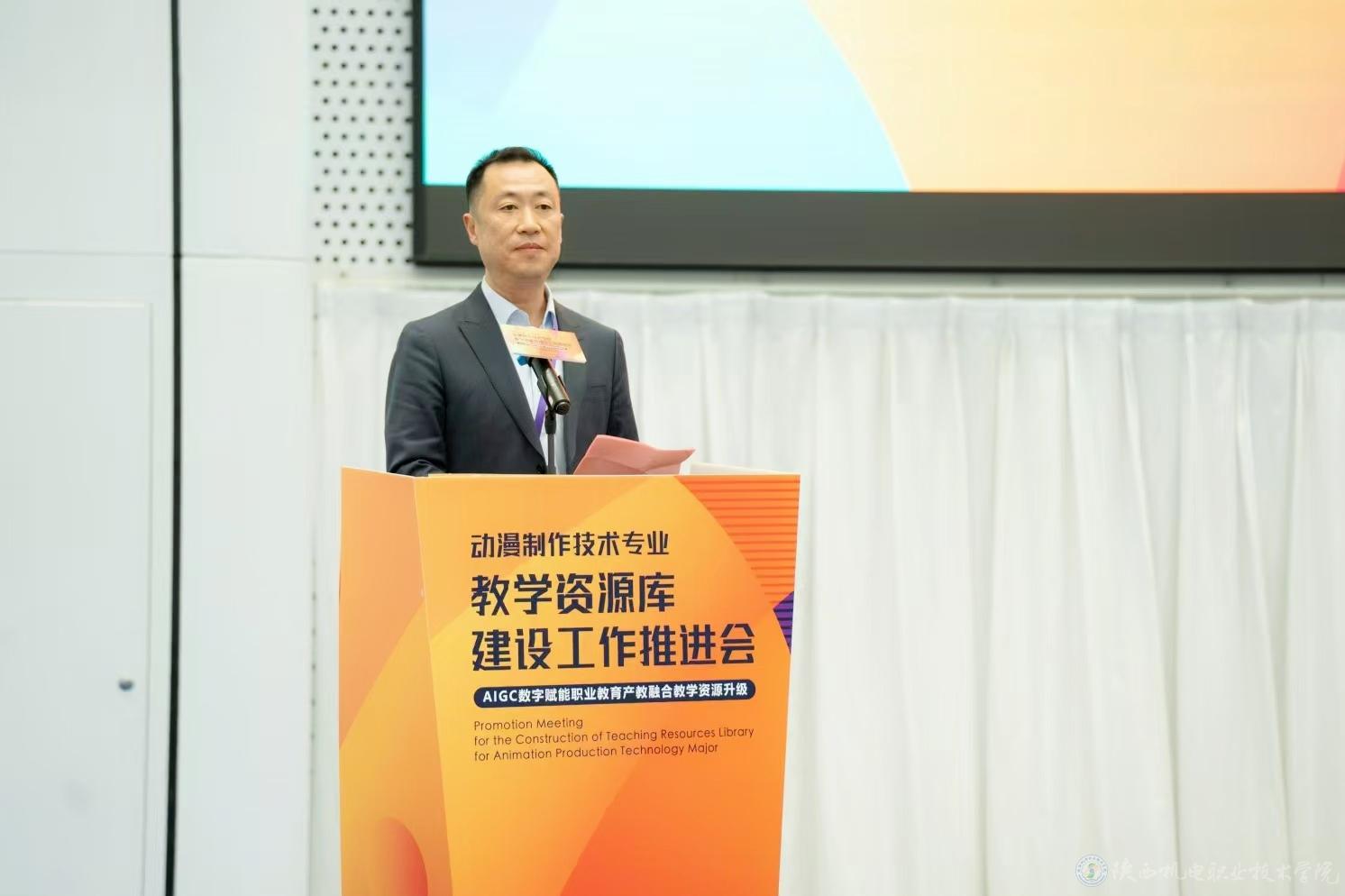 为快速提升beat365动漫制作技术及相关专业建设水平,推动专业课程体系和教学模式创新改革,12月22日,动漫制作技术专业教学资源库建设任务推进会在西安举办,beat365作为参建单位受邀参加会议。此次推进会由陕西职业技术学院主办,来自全国各地的知名企业代表、行业专家、职业院校代表齐聚一堂,共同探讨“新双高”标准要求下的AIGC数字内容产业数字化资源建设。beat365党委委员、副院长张克带队参会并主持专题分享环节,同时为参建院校课程负责人颁发参建证书。