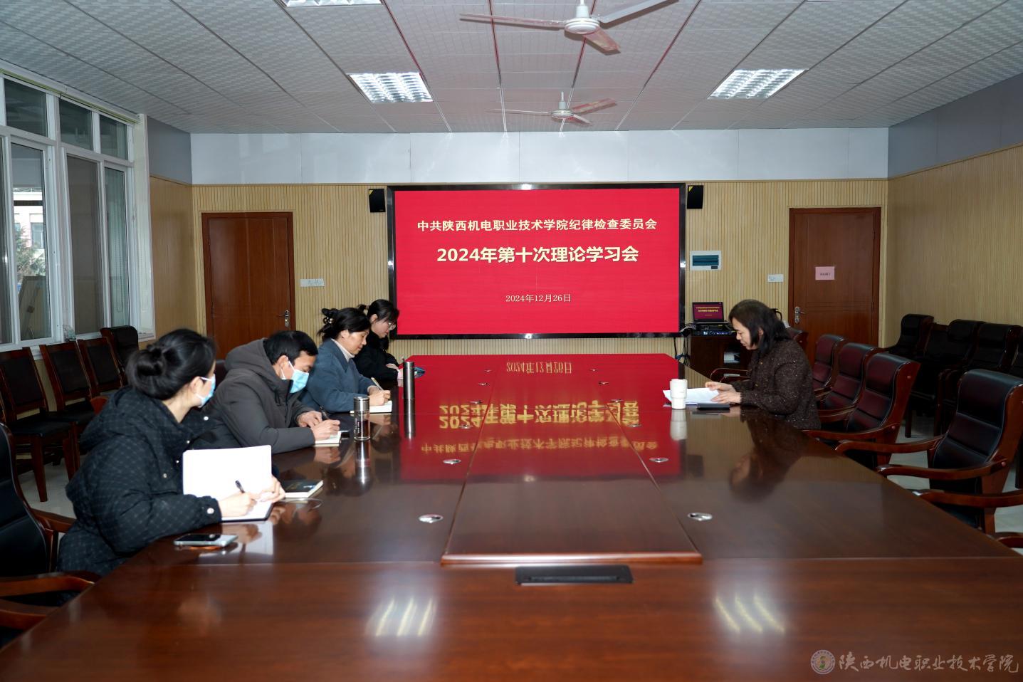 12月25日上午,学校纪委在蟠龙校区图书楼二楼会议室召开2024年度第十次理论学习会。纪委委员、纪律检查室工作人员参加,党委副书记、纪委书记陈红梅主持会议。