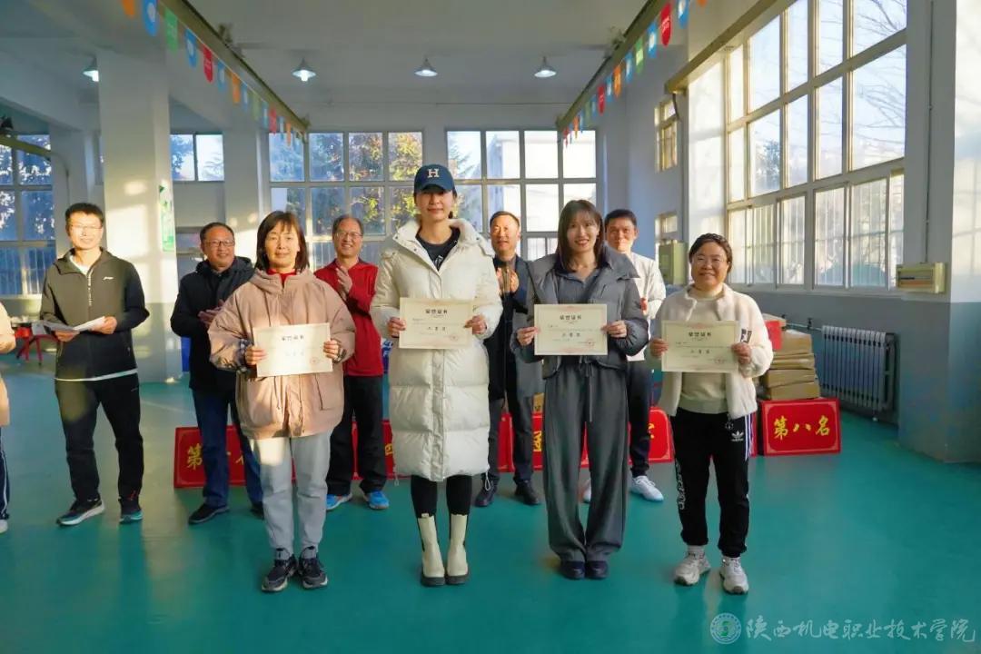 教职工乒乓球赛个人赛获得男子一等奖的是王文忠、陈峰、蔡鹏飞、张小辉;获得男子二等奖的是伊逊智、张泽宁、赵争东、贾九荣;获得男子三等奖的是周东、李英儒、张喆、康小斌、杨科、徐建、何京浩、张晓伟。
