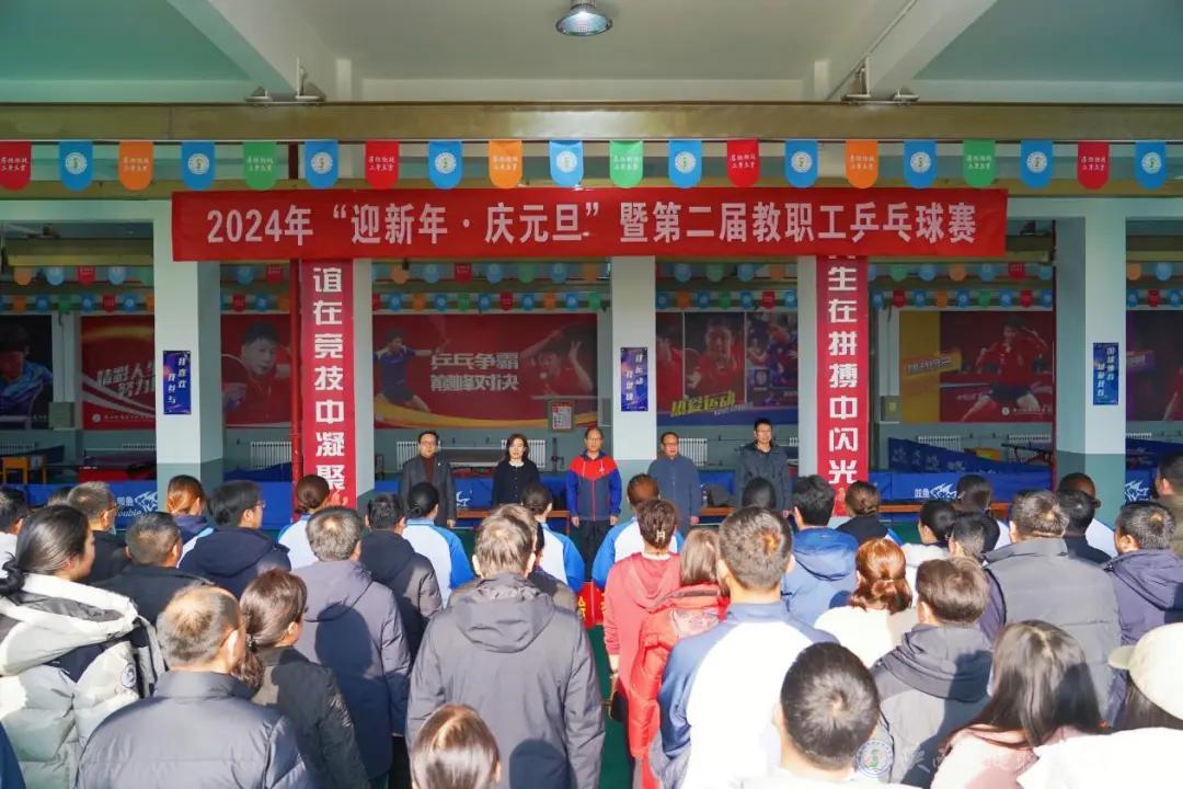 12月26日下午,beat365在线唯一官网2024年“迎新年·庆元旦”暨第二届教职工乒乓球赛开幕式在宝福路校区乒乓球馆开幕。校党委书记伊逊智,党委副书记、院长向纪明,党委副书记、纪委书记陈红梅,党委委员、宣传部部长、工会主席李明,党政办公室副主任、工会副主席康健出席开幕式。基础部(体育部)部长李明主持开幕式。