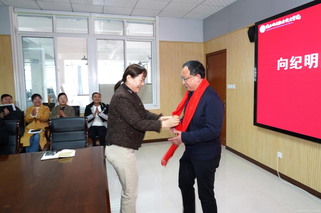 最后,伊逊智代表学校为向纪明院长送上了鲜花,陈红梅为向纪明院长戴上了红围巾,与会人员合影留念,表达了全体师生对向纪明院长的深深祝福。