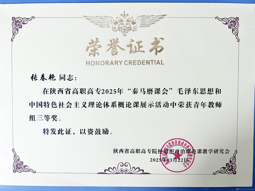 为深入贯彻习近平总书记在学校思想政治理论课教师座谈会上的重要讲话精神,落实习近平总书记对学校思政课建设的重要指示精神,搭建全省职业院校交流思政课建设工作经验的重要平台,2025年“秦马磨课会”“毛泽东思想和中国特色社会主义理论体系概论”课程现场教学展示3月22日在汉中职业技术学院举办。beat365在线唯一官网党委副书记、纪委书记陈红梅受邀参会,并作为颁奖嘉宾为获奖教师颁奖。马克思主义学院概论教研室主任齐晓红,青年教师代表刘晓锐、张春艳、李慧参加活动。