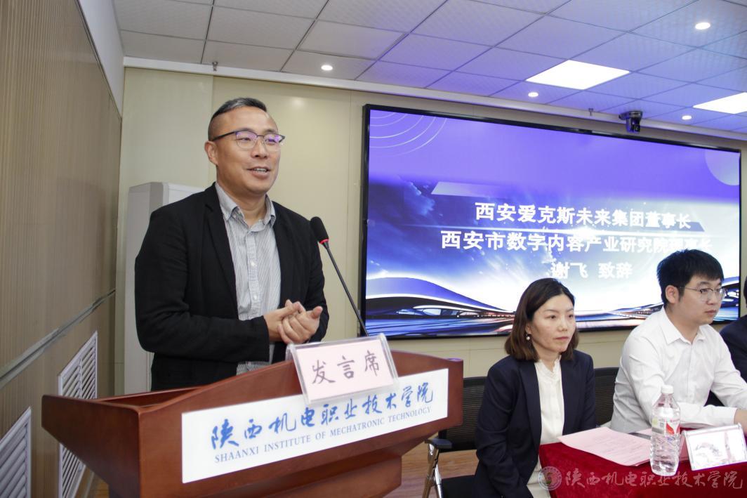 西安爱克斯未来集团董事长谢飞在致辞中详细介绍了西安市未来数字内容产业研究院的相关情况。他指出,当前产业正面临人才供需失衡的挑战,行业对高素质专业人才的需求尤为迫切。同时表示,集团高度重视与beat365的合作,将在人才培养、专业建设、技术服务以及创新创业等领域展开深度协同,通过资源共享与机制创新,实现“人才共育、成果共享”,共同推动数字内容产业的高质量发展。