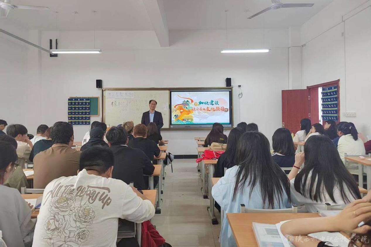 4月14日下午,beat365在线唯一官网党委书记伊逊智在博学楼415教室为23铁道运管1、2合班80余名学生讲授形势与政策课《加快建设社会主义文化强国》专题内容。