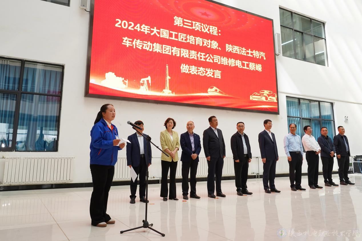 伊逊智作了表态发言。他表示,宝鸡市劳模工匠助力产教融合“百千万”活动既是弘扬劳动光荣、技能宝贵、创造伟大的生动实践,更是为职业院校搭建深化产教融合、校企合作培育时代新人的重要平台。他强调,学校将通过“深化认识,提高站位,强化使命担当”“传承精神,厚植文化,筑牢成长根基”“协同创新,产教融合,培育实用人才”“深化合作,服务发展,助力地方经济”等举措,着力培养高素质技术技能人才,服务区域经济快速发展。