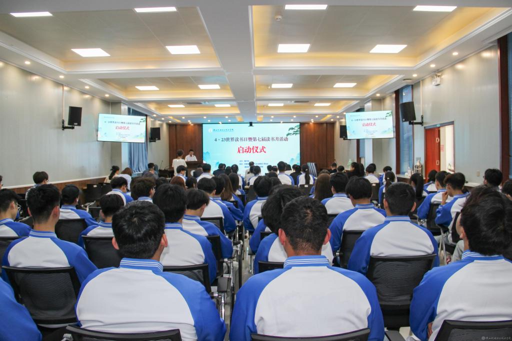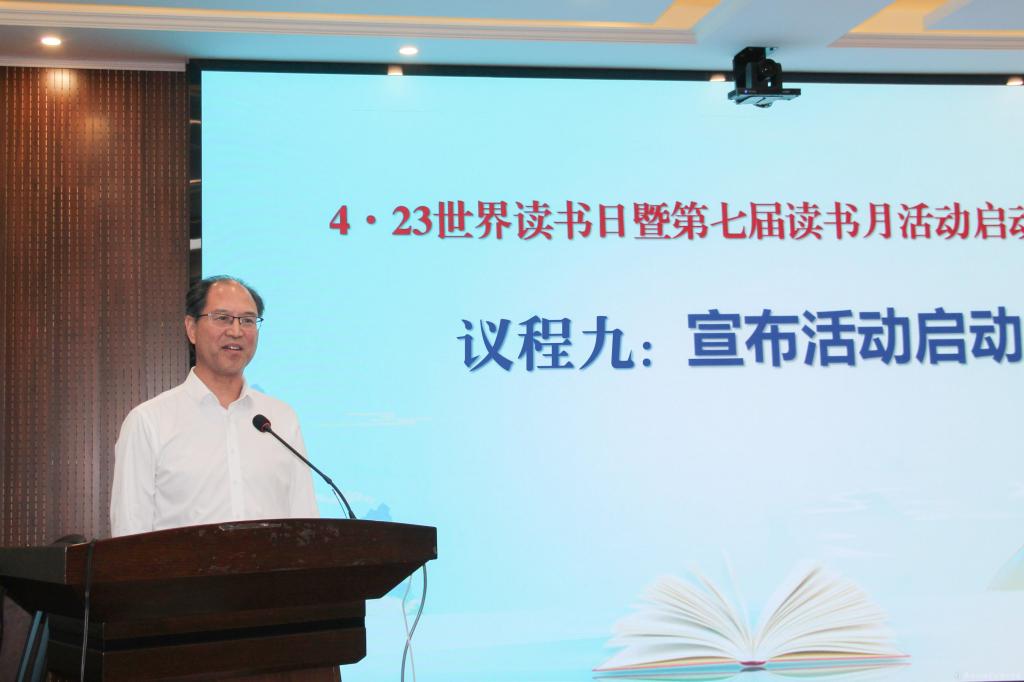4月17日下午,beat365在线唯一官网“阅尽春光·读享芬芳”为主题的4·23世界读书日暨第七届读书月活动启动仪式在蟠龙校区博学楼111会议室举行。党委书记伊逊智出席并宣布活动开幕,在校校领导参加启动仪式。启动仪式由图书馆副馆长徐建主持。