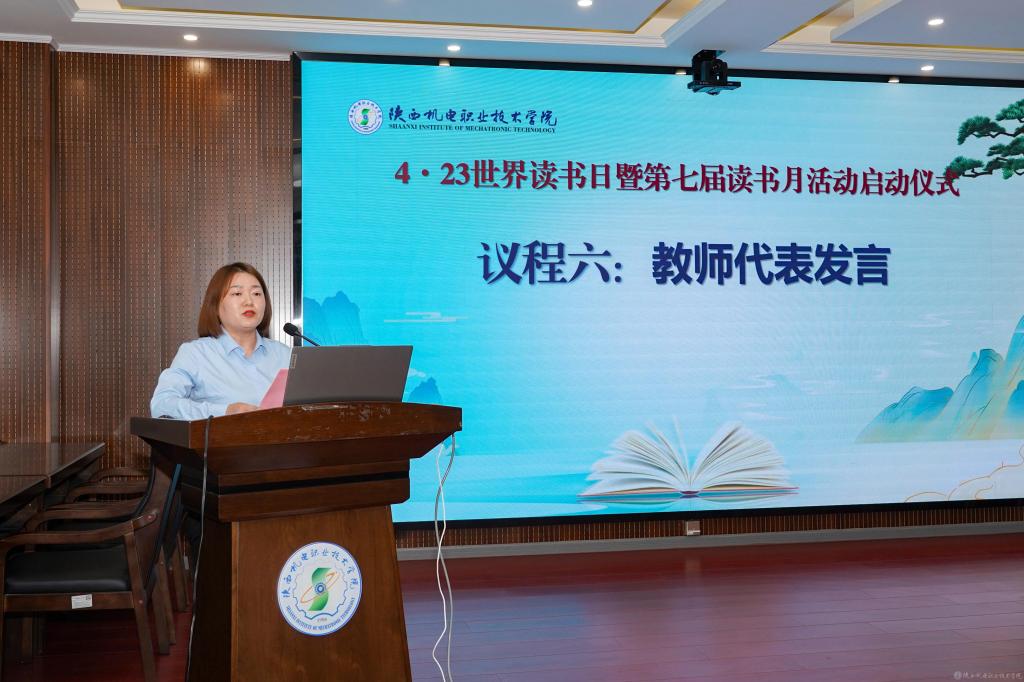党政办主任、工会副主席康健宣读《关于举办教职工读书分享会的通知》;数字经管学院武小元老师分享读书作品《你当像鸟飞往你的山》;播音主持社团带来诗歌朗诵《书页上的春天》;基础部语文教研室主任赵娥代表教师发言;智能制造学院24机电技术1班关泽宇代表学生发言。