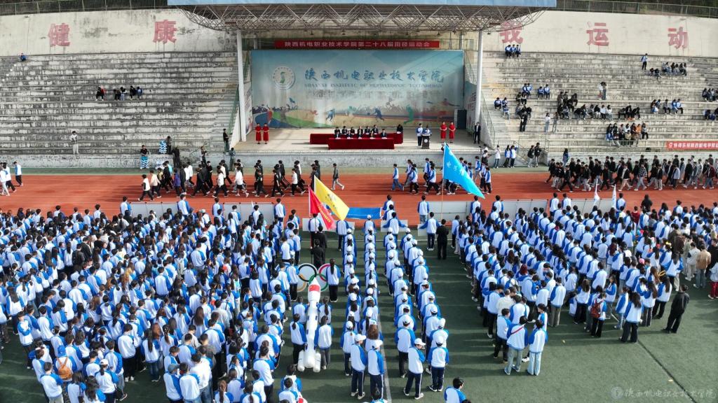 上午8时,运动会开幕式在慷慨激昂的运动员进行曲中拉开帷幕。国旗方阵、院旗方阵、彩旗方阵、裁判员代表队、运动员代表队迈着矫健的步伐依次步入运动场接受检阅。