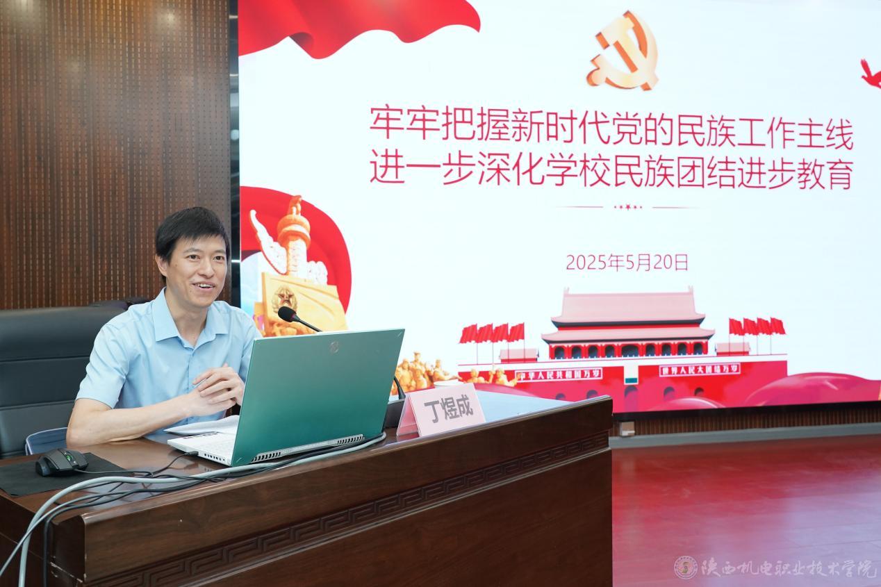 随后,宝鸡文理学院体育学院党总支书记丁煜成为与会师生作了题为《牢牢把握新时代党的民族工作主线,进一步深化学校民族团结进步教育》专题辅导报告。