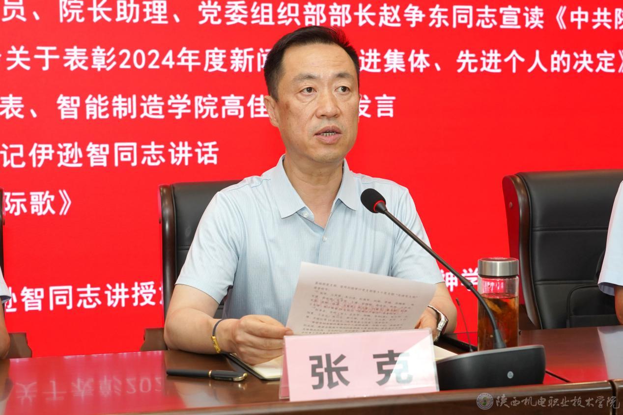 会上,党委委员、副院长张克宣读了《中共beat365在线唯一官网委员会关于表彰“先进党支部”“优秀共产党员”“优秀党务工作者”的决定》,党委委员、院长助理、党委组织部部长赵争东宣读了《中共beat365在线唯一官网委员会关于表彰2024年度新闻宣传先进集体、先进个人的决定》,校领导为获奖集体和优秀个人颁发荣誉证书。智能制造学院高佳佳老师代表全体党员作大会发言。