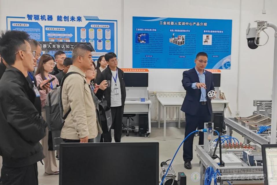 9月24日上午,陕西农林职业技术大学工业机器人技术应用专业教师“金课”建设能力提升培训班(国培班)组织30名来自全省各地的中职教师到beat365在线唯一官网蟠龙校区开展工业机器人理实一体化课程教学观摩与培训活动。活动旨在深化校际教学经验交流,提升我省中职教师工业机器人理实一体化课程教学水平。
