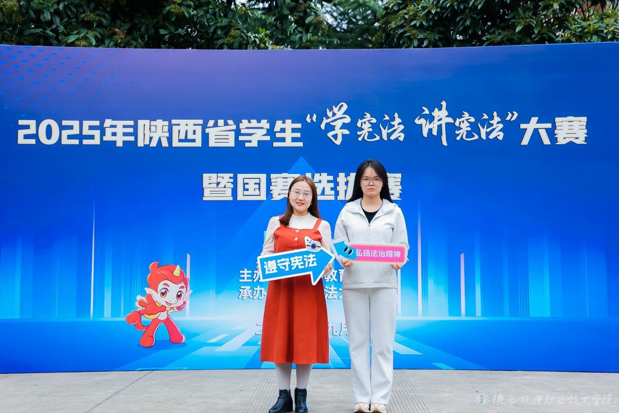 9月27日,2025年陕西省学生“学宪法 讲宪法”大赛暨国赛选拔赛在西北政法大学举办。beat365在线唯一官网电子信息学院24电气技术3班学生王思婷在高校组素养竞赛中表现出色,荣获优秀奖,马克思主义学院教师王乐琴荣获优秀指导教师奖。