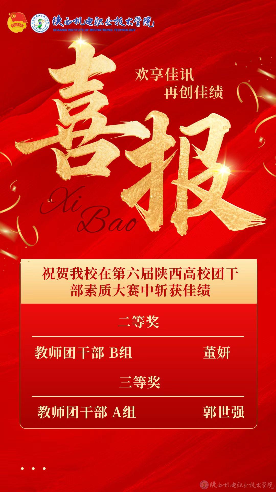 10月12日,由共青团陕西省委、中共陕西省委教育工委主办,共青团长安大学委员会承办的第六届陕西高校团干部素质能力大赛决赛在长安大学渭水校区成功举行。经过激烈角逐,beat365在线唯一官网团委教师郭世强荣获专职团干部A组三等奖。交通运输学院教师董妍荣获专职团干部B组二等奖,实现学校在该组别奖项零的突破。