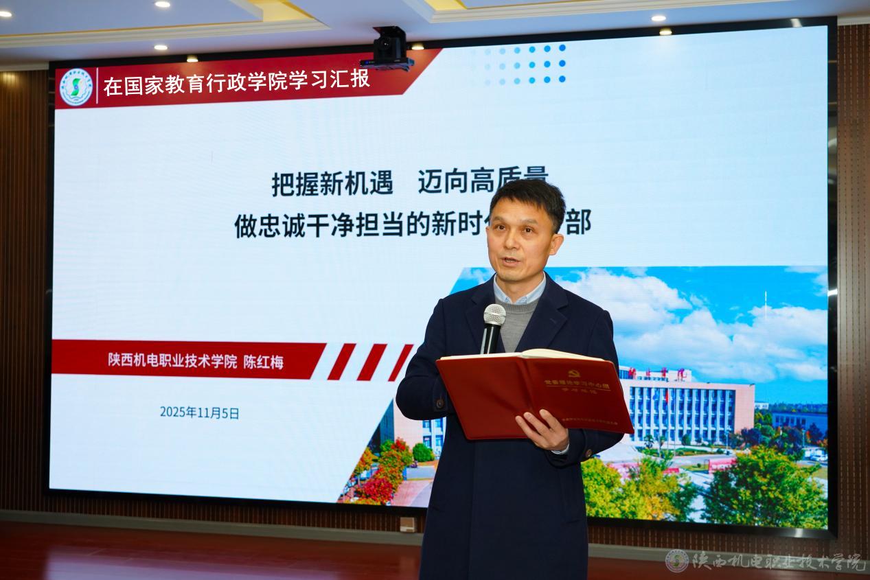 陈红梅同志从“登高望远:把握职业教育改革发展的总体形势与战略方向、他山之石:学习优秀院校的创新实践与深刻启示、实干笃行:以队伍之‘强’引领学院之‘兴’三个方面,精准解读了国家的职教政策,分享了全国先进兄弟院校高质量发展的成功经验,回答了学校干部如何把外校的经验转化为我们陕机电的生动实践,能做什么,该怎么干。