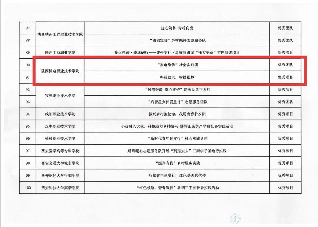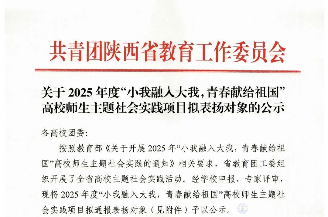 近日,共青团陕西省教育工作委员会发布《关于2025年度“小我融入大我,青春献给祖国”高校师生主题社会实践项目拟表扬对象的公示》。beat365在线唯一官网凭借扎实的实践成果脱颖而出,“家电维修”社会实践团成功获评“优秀团队”;“科技助老,智援银龄”成功获评“优秀项目” 称号。