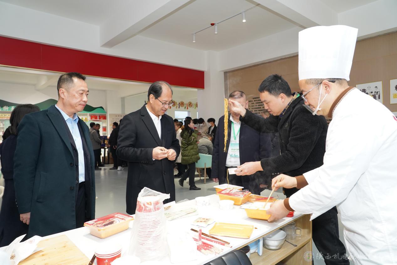 下午,与会人员参观了陕西西凤酒股份有限公司、陕西杂八得食品有限公司、宝鸡市擀面皮发展促进会、宝鸡擀面皮产业学院,品鉴了宝鸡擀面皮、柳州螺蛳粉、宜宾燃面、湖南平江辣条等特色美食。