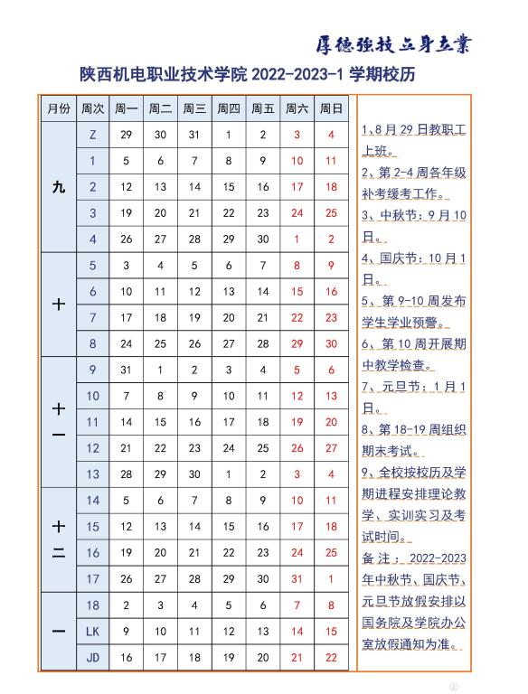 beat365在线唯一官网2022-2023-1学期校历