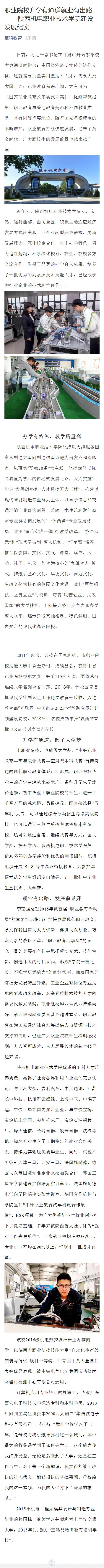 《宝鸡教育局官方微信》报道我院建设发展纪实。