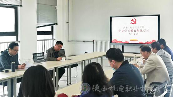 为迎接中国共产党成立100周年,增强党员对党史文化的理解和学习,提升党员干部党性修养,汽车工程学院党支部根据校党委《关于开展党史学习教育的实施方案》(陕机电职院党发〔2021〕76号)文件要求,4月30日,汽车工程学院党支部在宝福路校区汽车机电大楼206党员活动室召开党史学习教育第一次集中学习。会议由汽车工程学院党支部书记何蒙辉主持,纪委书记齐晓军参加会议。