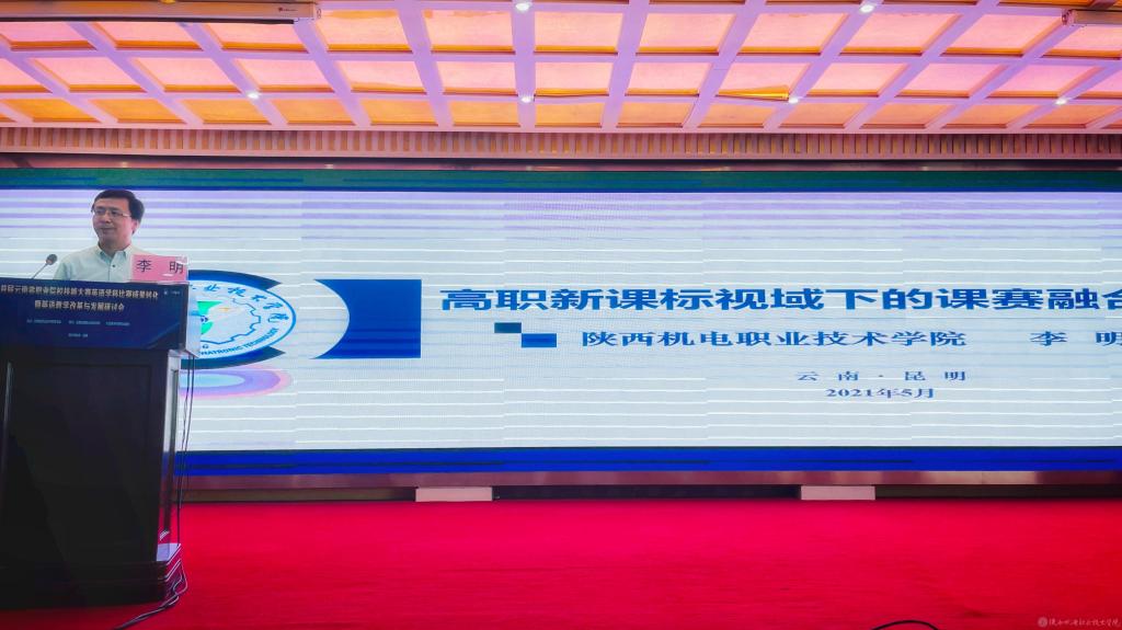 我院名师工作室主持人、教育部职业院校外语类专业教学指导委员会委员李明副教授应邀出席会议,并为大会作《高职新课标视域下的课赛融合教学实践研究》的交流报告和国赛备赛点评指导。教育部办公厅于3 月 23 日正式颁布了《高等职业教育(专科)英语课程标准(2021 版)》,并要求各高职院校贯彻执行。《标准》的落地实施,为贯彻落实《国家职业教育改革实施方案》,进一步完善职业教育国家教学标准体系奠定了政策基础,并为指导高等职业教育专科公共基础课程改革和课程建设和提高人才培养质量指明了发展方向。