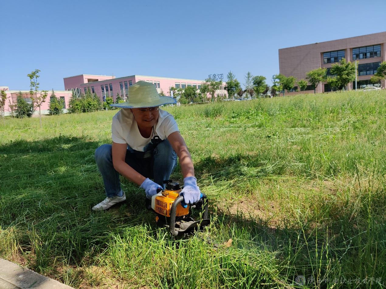 为充分发挥教工党员在校园管理中的先锋模范作用,迎接宝鸡市教育局组织的中职学校校长参观校园,6月4日上午,后勤基建党支部结合支部志愿服务开展党员奉献展风采—校园义务除草活动,部内党员共4人参加了本次活动。活动中,大家在支部副书记李峰的带领下,分工协作、默契配合、积极认真地投入到活动中,克服天气炎热、虫多草杂等困难,冲锋在前,铲除杂草,将校园内杂草进行修剪及清除,校园环境焕然一新。