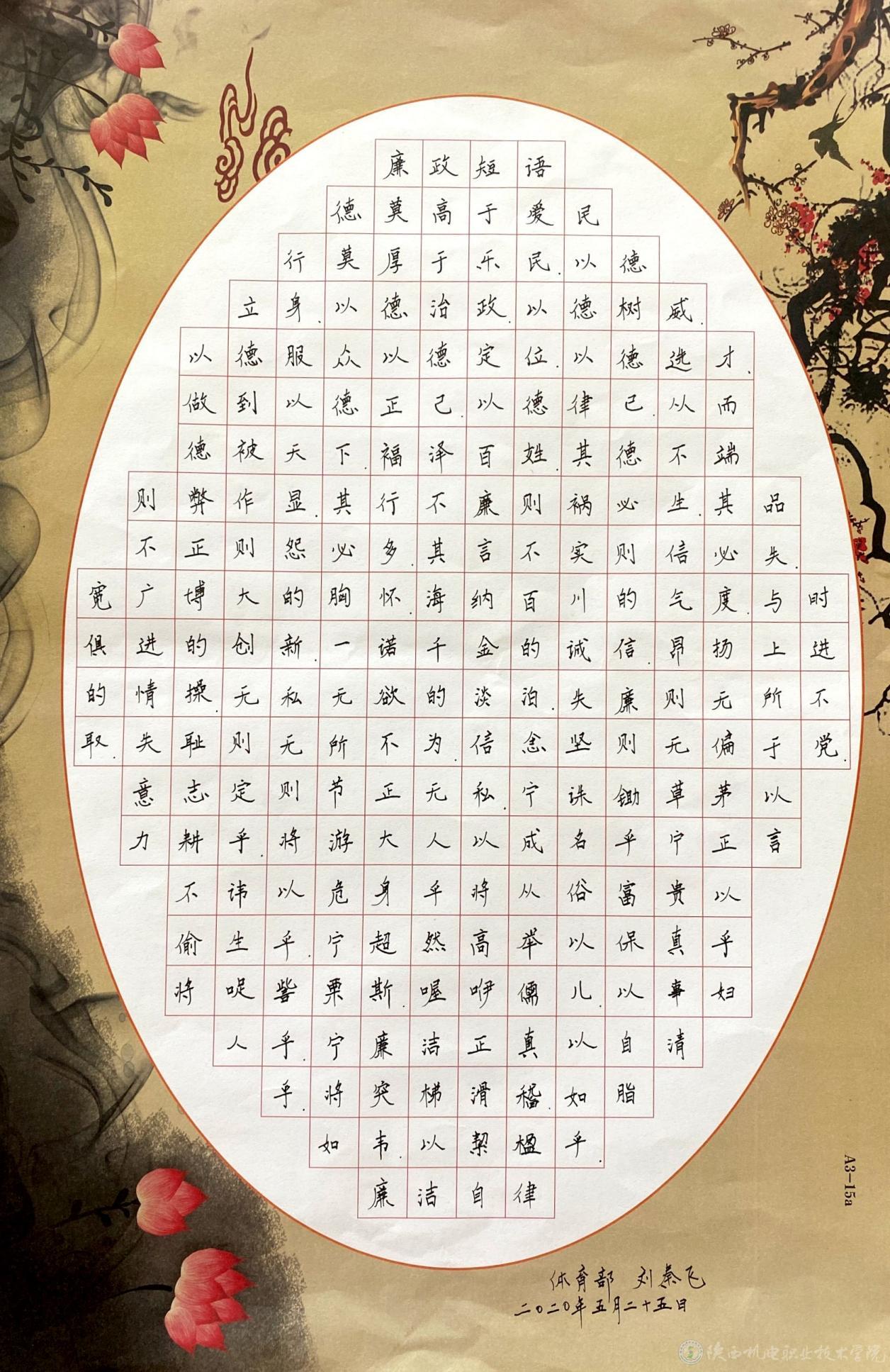 为扎实有效地开展beat365廉洁文化宣传教育月活动,不断加强基础部党支部党风廉政建设,树立廉洁从教、服务学生、以文倡廉、以廉化人的清风正气,5月31日,基础部党支部在宝福路校区举办廉政书画展活动。此次书画展共展出作品45幅,既有廉诗、廉对、廉政格言警句,也有借物咏志的山水花鸟画作。作品均以廉政廉洁为主题,内容丰富、风格独特、题材多样。
