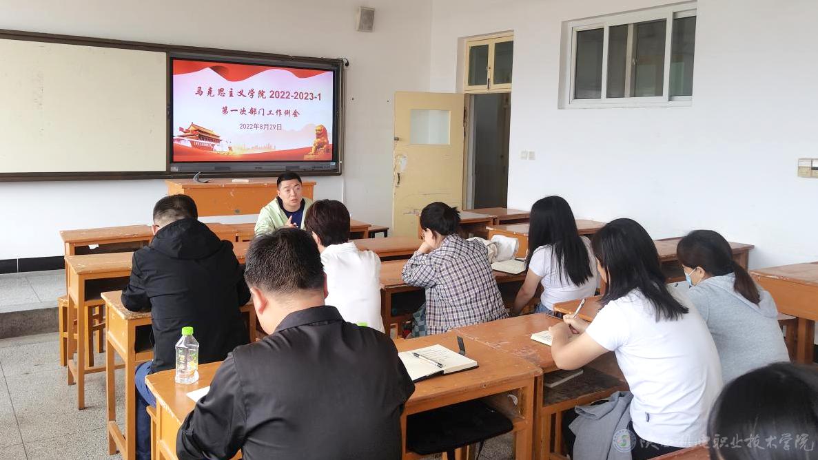 8月29日下午,马克思主义学院在宝福路校区教学楼509教室开展新学期的相关工作安排部门例会,会议由马克思主义学院副院长王枢主持,马克思主义学院所有思政课专任教师参加此次会议。