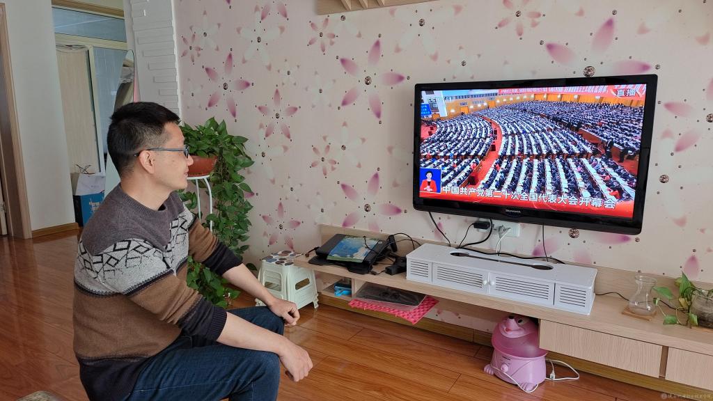 支部党员在家收看中国共产党第二十次全国代表大会开幕会