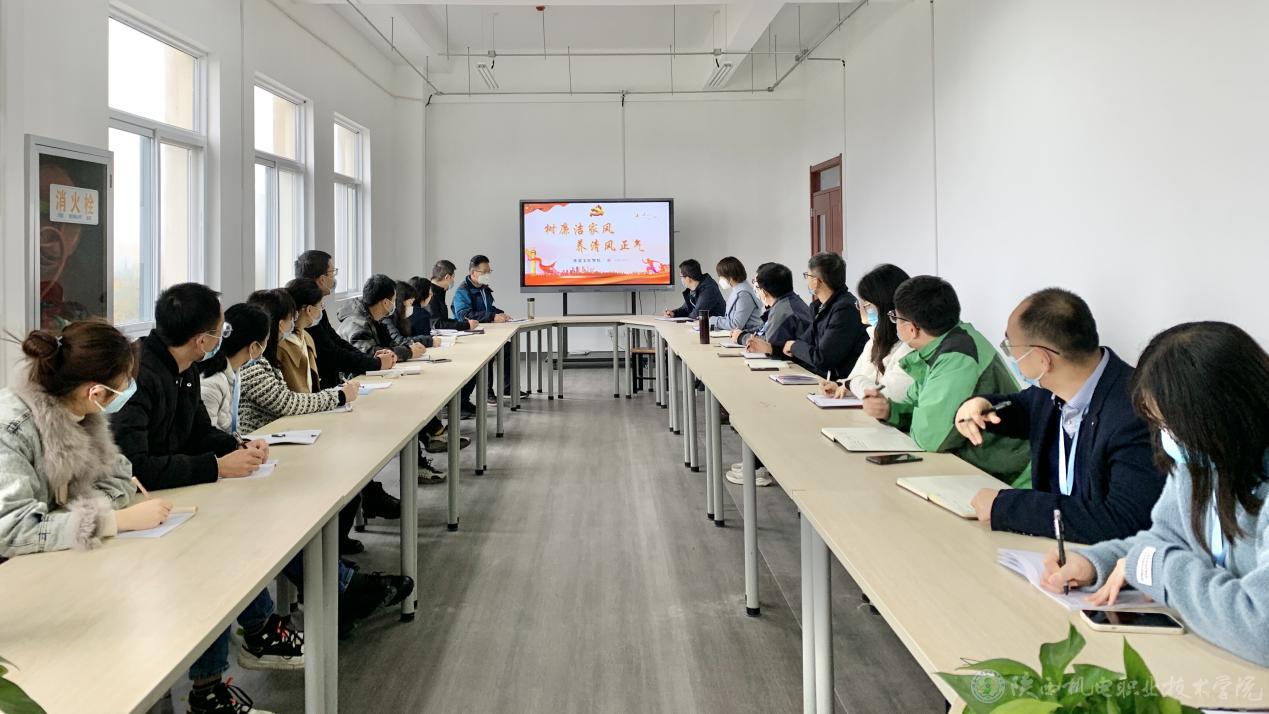 根据《关于印发<中共beat365在线唯一官网委员会开展作风建设专项行动实施方案>的通知》(陕机电职院党发(2022) 219号)文件要求,为扎实推进作风建设专项行动,铁道工程学院于11月2日下午在蟠龙校区行知楼南204会议室开展“树廉洁家风 养清风正气”,主题教育活动,铁道工程学院全体教师参加。