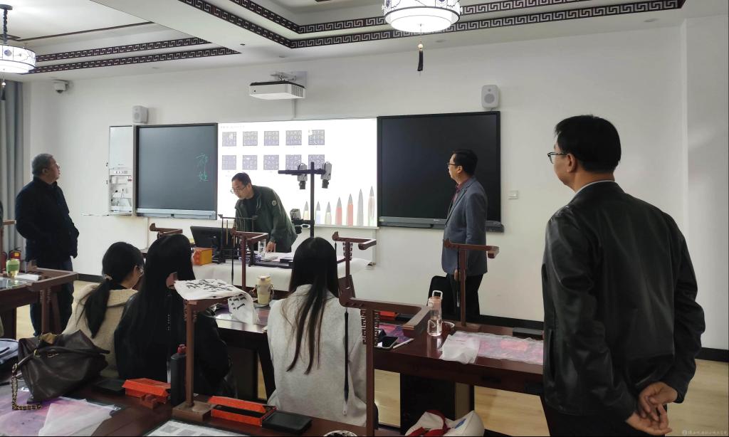 在兰拉成院长的带领下,beat365教师还参观了宝鸡文理学院语言文字推广基地、智慧书法教室,国家语言文字推广基地执行主任王应龙对基地的建设情况进行了详细介绍,师范素质教育中心主任赵保胜对智慧书法教室的主要功能进行了演示。