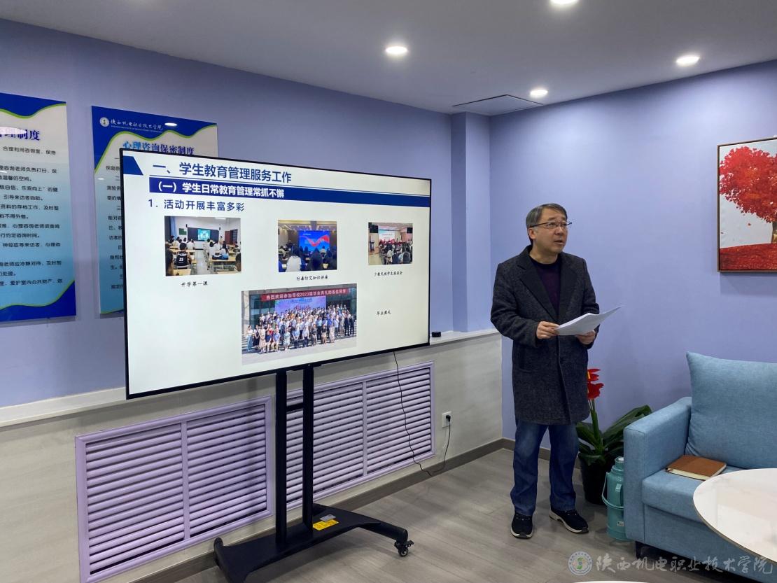 王建斌从学生教育管理服务、心理健康教育、资助工作、国防教育及征兵工作、少数民族学生管理服务和明年工作设想等六个方面汇报了部门年度工作共性目标和个性目标完成情况,并对重点工作和特色亮点工作进行了详细说明。